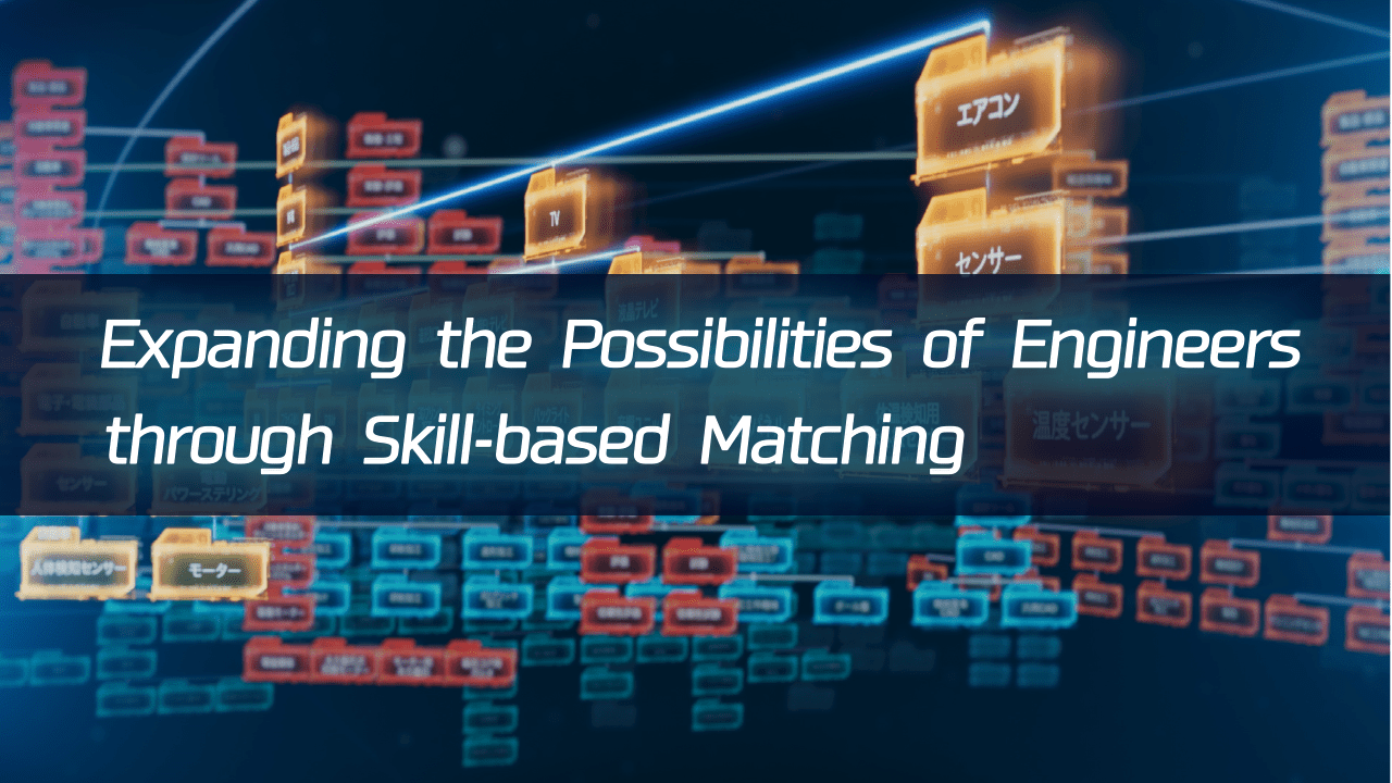 Asking such questions, our company has developed a never-seen-before direct matching system that visualizes the skills possessed by engineers and the skills required by companies in the form of tree diagrams known as Skill Trees and Technical Trees, respectively, and then demonstrates the correlation between the two using any number of relational lines, thereby allowing engineers to pursue possibilities that surpass business categories.
